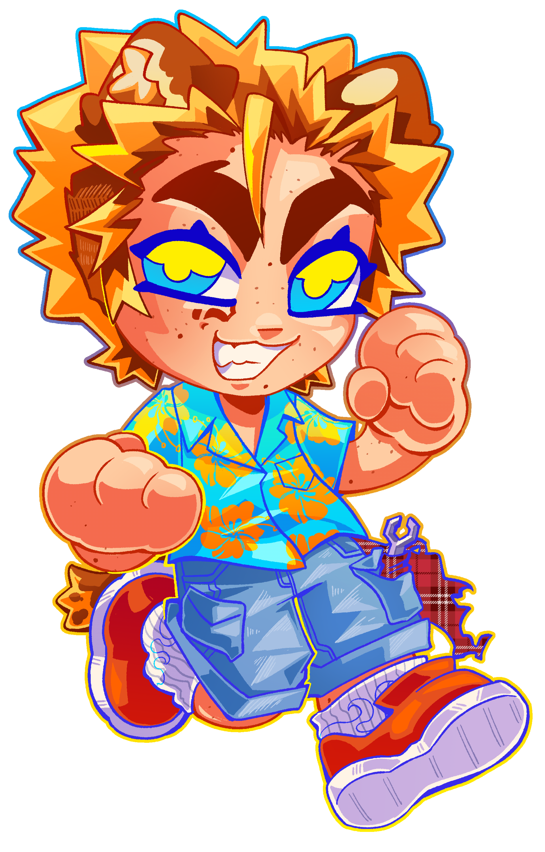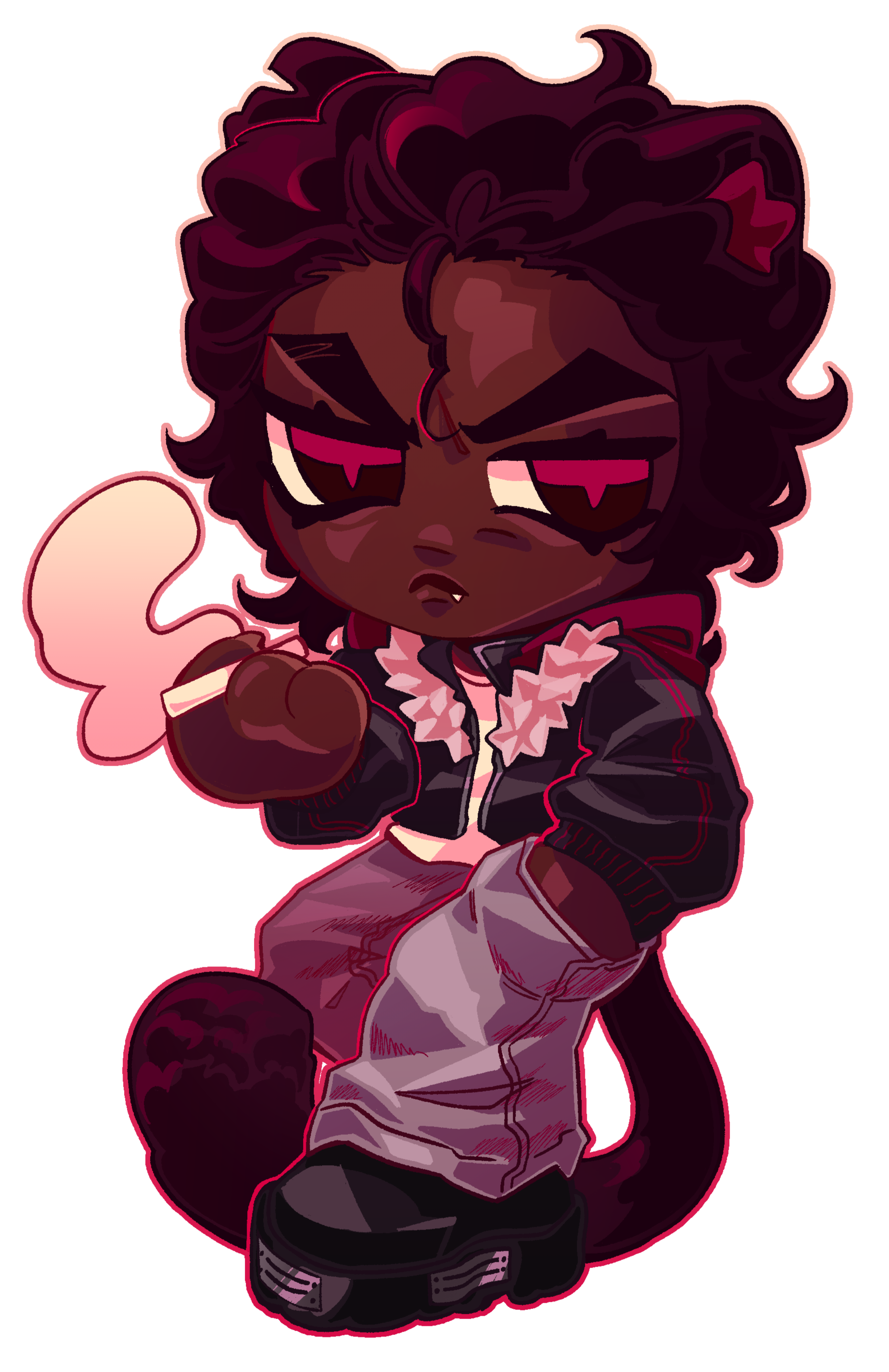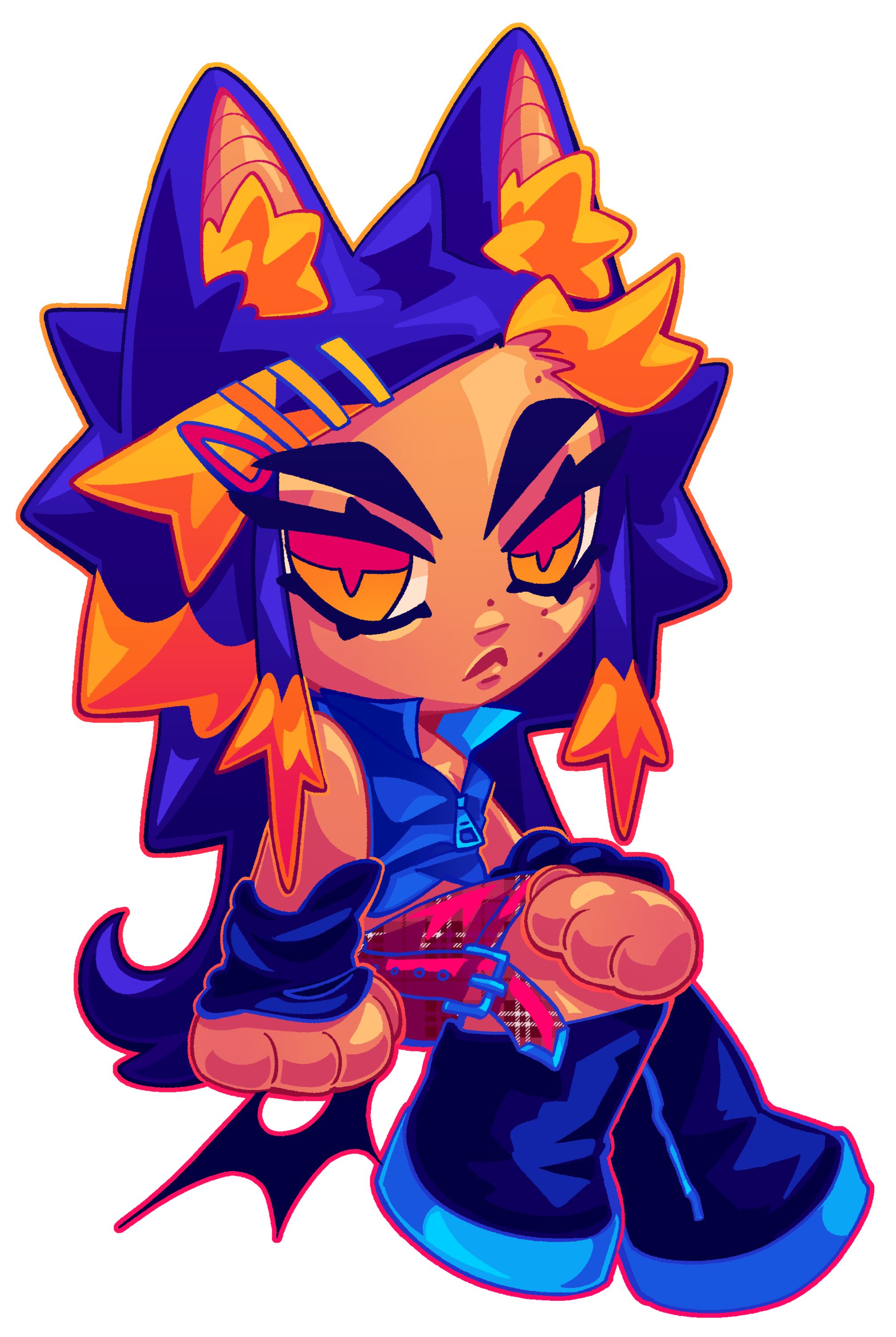 Ray is a happy-go-lucky mechanic, with two left hands and a favorite wrench to fix everything he broke in the process of repair. Living his whole life on the outskirts of the city, he's excited to experience every tiny bit of his adult life with the ability to drive into town at any moment he wants. He's also a local legend, all due to his tail being cut in half when he was younger. That was his first and last visit in the city as a kid and he doesn't seem to remember the exact way it happened, but that makes the story even more useful for all the parents warning their kids about watching their tails... He believes that this event gave him the luck he carries to this day. "an eye for an eye kind of exchange with the universe~!". Now, whenever he messes something up, in some supernatural way, he'll be able to fix the damage and make it two times better than before. at the moment, he's also working part-time as a bartender in VOXHOLE, the very bar in which V-amps play their gigs. He'll get all flustered and avoid the topic when you ask him why he chose this job, but some seem to have noticed he must've taken interest in a certain V-AMPS member...